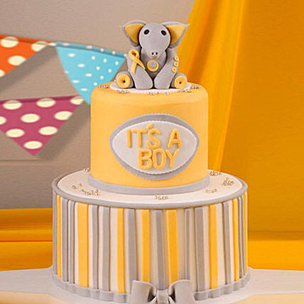 Elephants symbolize strength, happiness, royalty, longevity & good luck which is why an elephant themed cake is popular for baby showers! Tell the world proudly about the arrival of your little angel with this delicious cake.