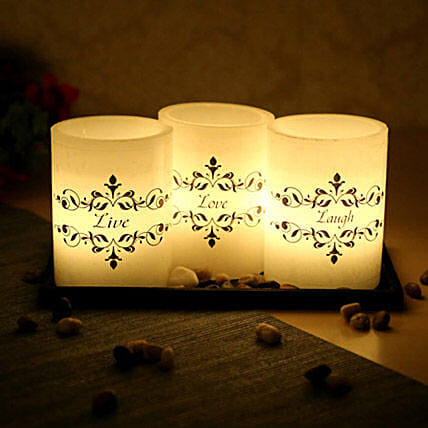 Candle lights symbolize light in the dark. Light up your life with these 3 L candles- Live, Love & Laugh. These remind you to never become sad and live happily with your loved ones. Order now these beautiful candles for you and your loved ones on Ferns N Petals.