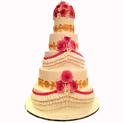 Indeed, a wedding cake serves the purpose of enhancing the celebrations and at the same time helps in blessing the couple for a happy and prosperous future ahead. Order this 5 Tier Chocolate/Vanilla Cake to make the celebrations a "larger than life" feat and take the celebrations to another level. A perfect way to add grandeur to your special occasions.
