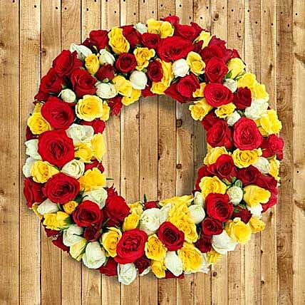Rose is the queen of the garden which knows to beautify our life with the stunning look and of course soothing fragrance. Here is a gorgeous wreath of red, white, and yellow roses that would simply uplift the gorgeousness of your home. While you are decorating your home for any festive moment, don’t forget to order this lovely wreath of roses.