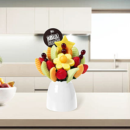 • Celebrate this National Day with this delicious arrangement of fresh fruits. You can also gift this healthy arrangement of fresh fruits to your loved ones. It contains fresh strawberries, honeydew, pineapples, cantaloupe, and grapes. A ceramic container is taken to arrange these crunchy and tasty fruits beautifully.