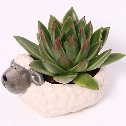 Green Echeveria Plant In Sheep Design Pot