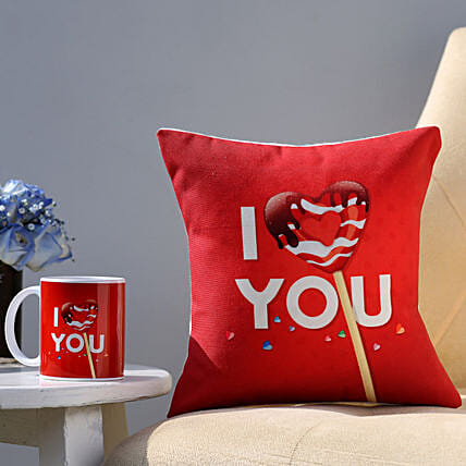 • Love as sweet as candy. Tell your special someone how much you Iove them with this mug & cushion combo.