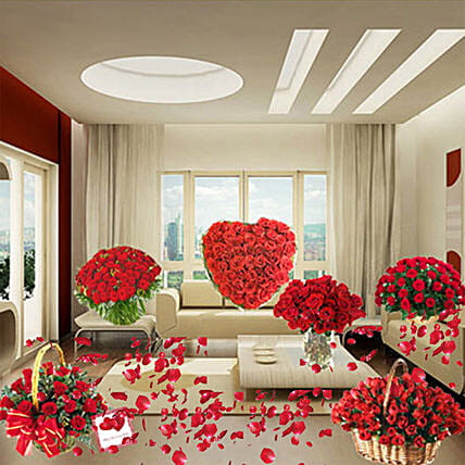 Win her heart with beautiful rose decoration. Let her know how much you love her by making her feel special with a romantic gesture. We will create a whimsical aura in the room with roses arranged as a big heart signifying that she has yours! Other than that the room full of roses will enchant her and bring a smile on her face. You could surprise her on her birthday, your anniversary or maybe if you’re planning to propose her!