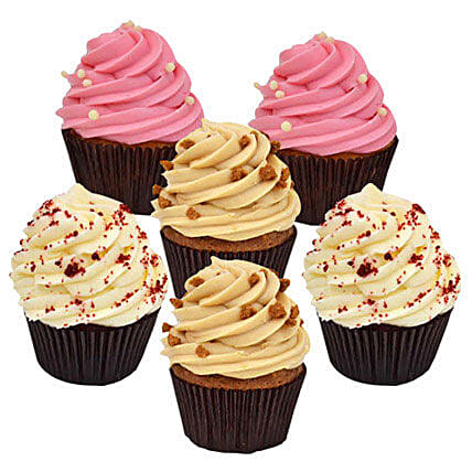 Strawberry, speculoos, and red velvet are the flavors of cupcakes here in this set of six cupcakes. Present this awesome set of cupcakes to your family or best friends or relatives and enjoy any special occasion or festival with great taste!