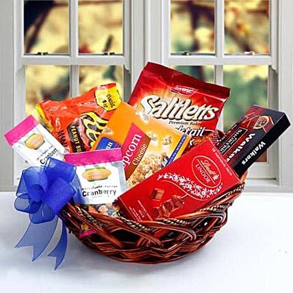Send basket of love to your loved ones with this assortment! A gift basket comprising of cheese popcorn, packets of craneberry nut mix, reeses peanuts cup, salted cocktail mix, milk chocolate and shortbread cookies is perfect for spoiling your sweetheart. Brimming with luscious delicacies, it makes a perfect way to every heart.