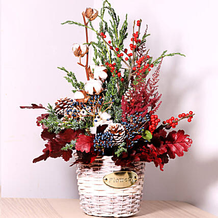 • One Sided Basket Arrangement of 2 Stem Ilex Berries