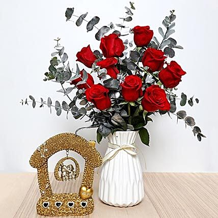 Red Roses Ceramic Pot and Couple Idol