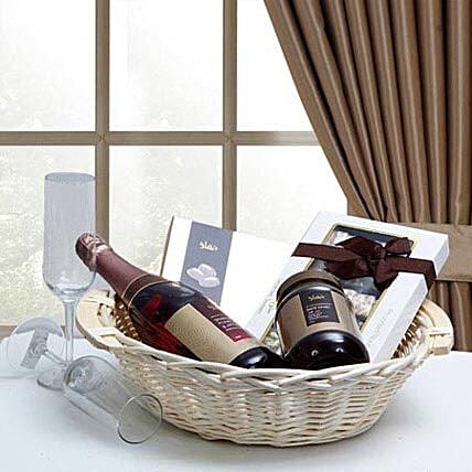 Let that someone know your love is true, with this exquisite collection of grape juice, dates, baklava and champagne glasses placed decoratively in a cream color oval shaped basket. Filled with delicious token of appreciation, get ready to dazzle your loved ones.