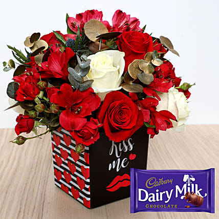 • Square Vase- 12 x 12 cms Wrapped with I Love You Sticker
