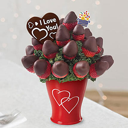 If you want to win the hearts of your loved ones with a perfect recipe, here is the one for you. It consists of fresh strawberries that are hand dipped in gourmet chocolate and are arranged in a keepsake container with delicious Belgian Chocolate Pops. The container of the arrangement may vary.