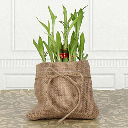Be it your bathroom or bedroom, this 2 layered lucky bamboo plant in a jute bag will be a perfect addition anywhere. This plant not only looks great but, also adds a touch of freshness to the room. It is sure to brighten up your house with a touch of green. So, increase luck and positivity in your home with an inclusion of this lucky bamboo plant.