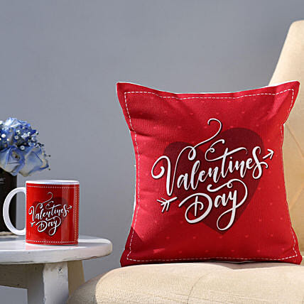 • Offer your sweetheart this adorable Valentine's Day special cushion and mug combo to say "I Love You" to her.