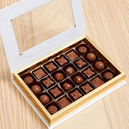 • Filled with 12 Flavours such as roasted nuts, truffles, pralines, purees, ganache and wafers.