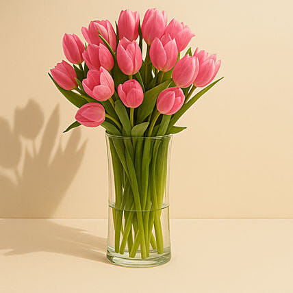 Pink colour is widely accepted as the colour for girls. So, to impress any girl of any age, you can take up this glass vase arrangement of 20 pink tulips. She would understand your admiration, love, regards, respect, appreciation, and warmth you have for her. On any occasion ranging from birthday to anniversary or Valentine’s Day, you can take up this floral piece for her as a gift.